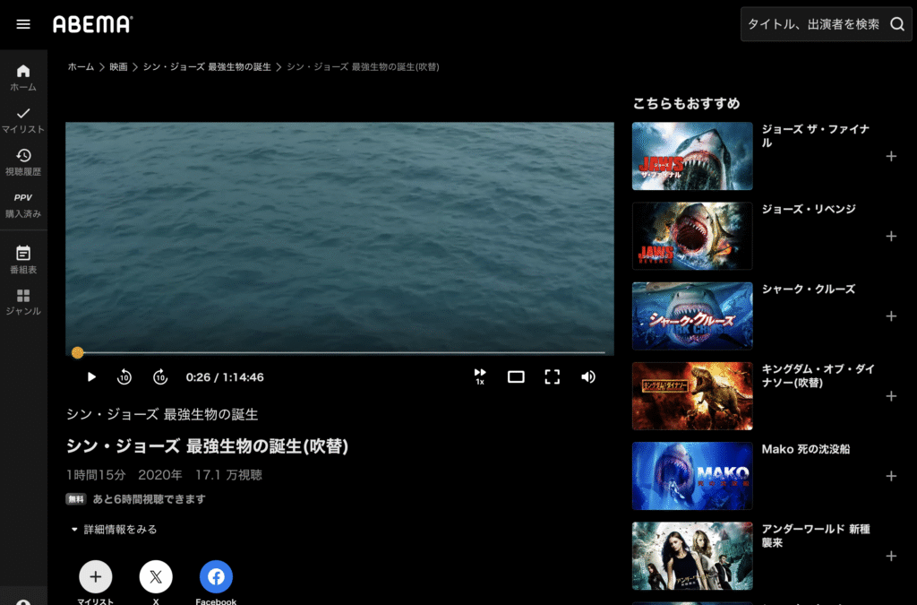 最後にVPN接続が完了した状態でAbema TVにアクセスします。