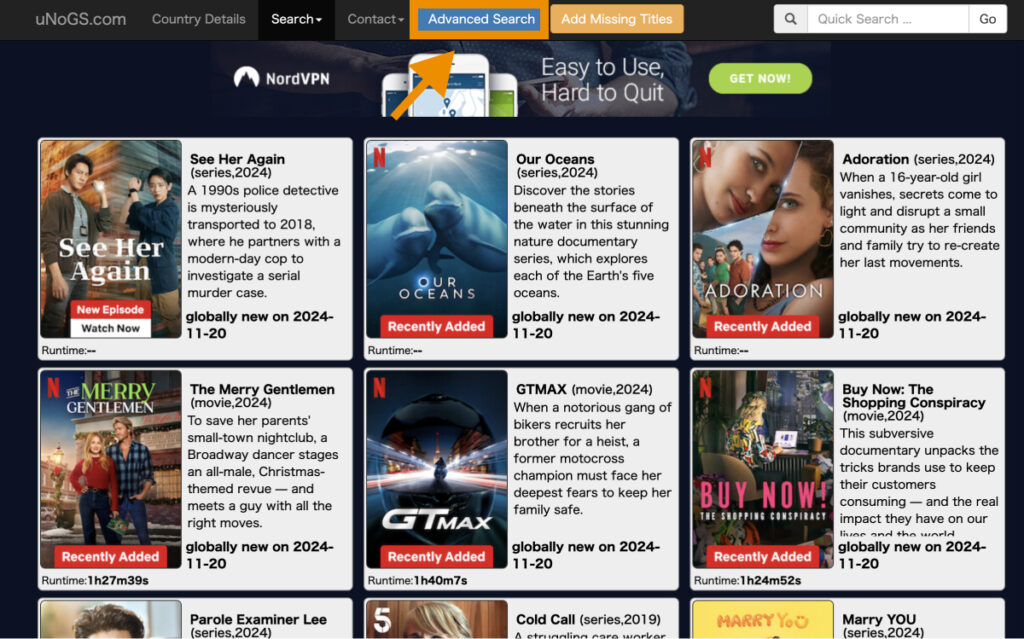 各国限定のNetflix限定コンテンツは、unogs.comという非公式のNetflixコンテンツ検索サイトから検索・確認できます。