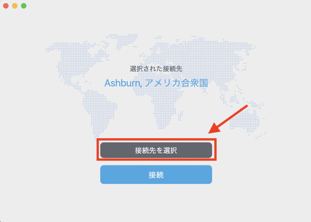 MillenVPNアプリが起動したら、「接続先を選択」をクリックします。