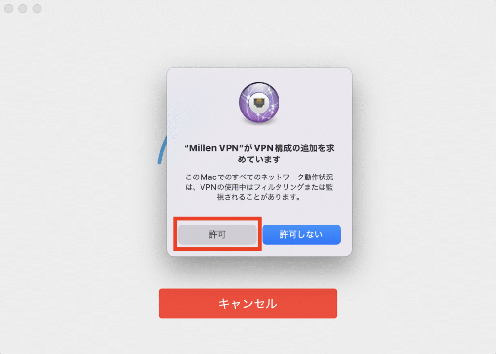 本例ではmacOS版アプリをダウンロードしてVPNに接続していますが、他OSを使ってMillen VPNを使う方法が知りたい場合は、「【MillenVPNの評判は?】使用した感想と使い方・設定手順」をご覧下さい。