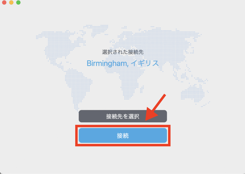 接続先選択後、接続ボタンをクリックします。以上でVPNの接続は完了です。
