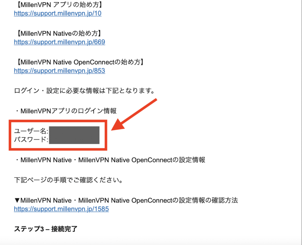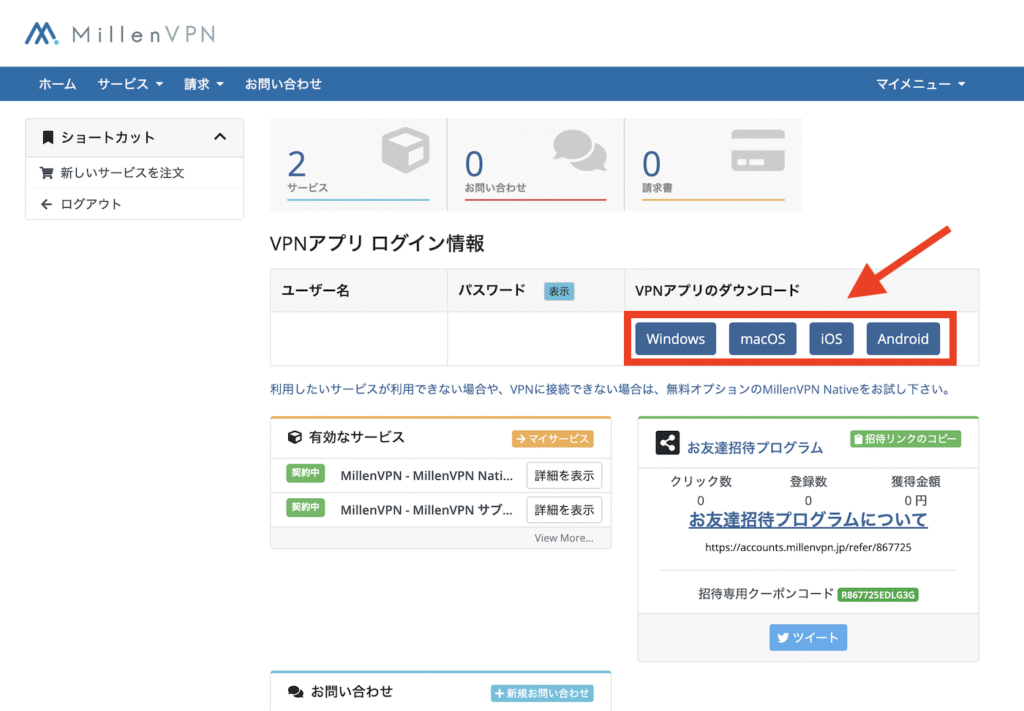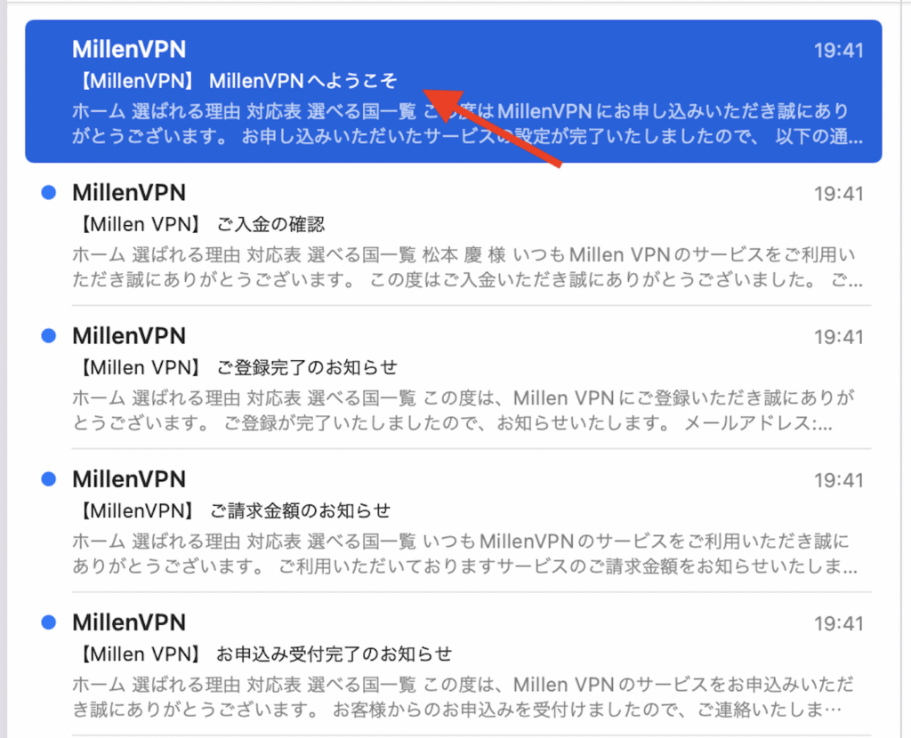 「【MillenVPN】MillenVPNへようこそ」をクリックします。